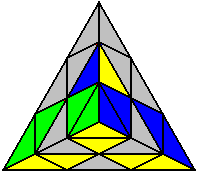 Пірамінкс складається з 4 центрів (кожен центр має 3 наклейки), 6 ребер (кожне ребро має 2 наклейки) і 4 вершинок (кожна вершинка має 3 наклейки).