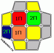 - CFOP для 2х2х2 — мы собираем первый слой, затем ориентируем при помощи OLL углы второго слоя, и, наконец, пермутируем углы второго слоя. Преимущество: если Вы собирали CFOP’ом, то ничего не надо учить нового, формулы все те же. Недостаток: нельзя достигнуть высоких результатов с его помощью.