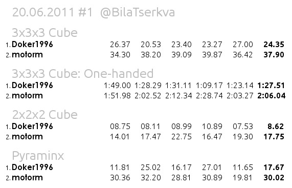 Re: Перша зустріч швидкуберів в м. Біла Церква (20.06.2011р.)