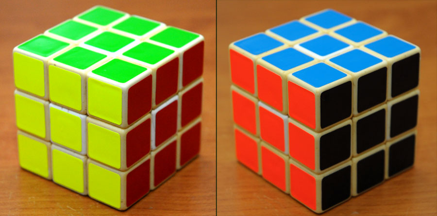 | Стандарт (для чорних кубів) Білий, жовтий, помаранчевий, червоний, зелений, синій
