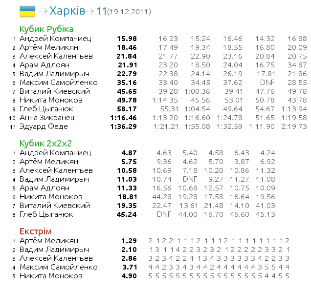 Встретили парочку начинашек. Молодой человек с интересными фингертриксами. И дама Анна. Меня не может не радовать тот факт, что женский спидкубинг в Харькове не стоит на месте! И глазу приятно и душе ;)